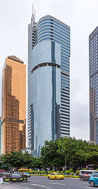 5167th tallest in the world (shared with 120 other buildings) 4940th tallest on the Northern Hemisphere (shared with 116 other buildings) 4096th tallest in Asia (shared with 83 other buildings) 2620th tallest in China (shared with 50 other buildings) 190th tallest in Guangzhou (shared with 4 other buildings)31st tallest built in 1997 28th tallest built in Asia in 1997 19th tallest built in China in 1997 Tallest built in Guangzhou in 19974576th most northern skyscraper 2938th most southern skyscraper 3833rd most western skyscraper 3681st most eastern skyscraper13th tallest within 1 kilometre 144th tallest within 10 kilometres (4 equally tall buildings in that area) 498th tallest within 100 kilometres (5 equally tall buildings in that area) 1710th tallest within 1000 kilometres (38 equally tall buildings in that area) 2785th tallest within 2000 kilometres (56 equally tall buildings in that area) 3683rd tallest within 5000 kilometres (75 equally tall buildings in that area)7th most floors within 1 kilometre (1 building with same floor number) 72nd most floors within 10 kilometres (10 buildings with same floor number) 303rd most floors within 100 kilometres (27 buildings with same floor number) 1153rd most floors within 1000 kilometres (138 buildings with same floor number) 1696th most floors within 2000 kilometres (188 buildings with same floor number) 2301st most floors within 5000 kilometres (262 buildings with same floor number)108 metres from the closest taller building