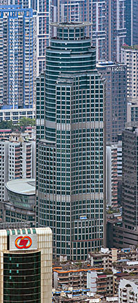2224th tallest in the world (shared with 43 other buildings) 2110th tallest on the Northern Hemisphere (shared with 40 other buildings) 1768th tallest in Asia (shared with 38 other buildings) 1116th tallest in China (shared with 15 other buildings) 67th tallest in Guangzhou13th tallest built in 1998 13th tallest built in Asia in 1998 8th tallest built in China in 1998 Tallest built in Guangzhou in 19984597th most northern skyscraper 2813th most southern skyscraper 3860th most western skyscraper 3550th most eastern skyscraper3rd tallest within 1 kilometre 54th tallest within 10 kilometres 226th tallest within 100 kilometres (3 equally tall buildings in that area) 693rd tallest within 1000 kilometres (8 equally tall buildings in that area) 1181st tallest within 2000 kilometres (17 equally tall buildings in that area) 1541st tallest within 5000 kilometres (33 equally tall buildings in that area)2nd most floors within 1 kilometre 64th most floors within 10 kilometres (9 buildings with same floor number) 288th most floors within 100 kilometres (29 buildings with same floor number) 1109th most floors within 1000 kilometres (136 buildings with same floor number) 1652nd most floors within 2000 kilometres (186 buildings with same floor number) 2249th most floors within 5000 kilometres (260 buildings with same floor number)384 metres from the closest taller building
