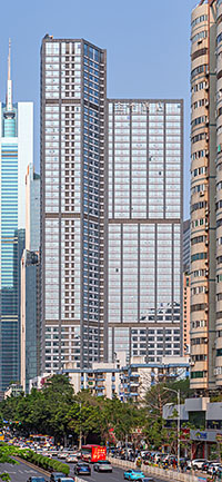 1644th tallest in the world (shared with 34 other buildings) 1560th tallest on the Northern Hemisphere (shared with 32 other buildings) 1286th tallest in Asia (shared with 28 other buildings) 790th tallest in China (shared with 15 other buildings) 51st tallest in Guangzhou (shared with 1 other building)75th tallest built in 2015 66th tallest built in Asia in 2015 47th tallest built in China in 2015 2nd tallest built in Guangzhou in 20154569th most northern skyscraper 2841st most southern skyscraper 3836th most western skyscraper 3574th most eastern skyscraper3rd tallest within 1 kilometre 39th tallest within 10 kilometres (1 equally tall building in that area) 147th tallest within 100 kilometres (3 equally tall buildings in that area) 480th tallest within 1000 kilometres (14 equally tall buildings in that area) 842nd tallest within 2000 kilometres (20 equally tall buildings in that area) 1096th tallest within 5000 kilometres (28 equally tall buildings in that area)2nd most floors within 1 kilometre 25th most floors within 10 kilometres (2 buildings with same floor number) 112th most floors within 100 kilometres (15 buildings with same floor number) 495th most floors within 1000 kilometres (64 buildings with same floor number) 712th most floors within 2000 kilometres (103 buildings with same floor number) 955th most floors within 5000 kilometres (148 buildings with same floor number)260 metres from the closest taller building