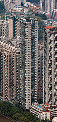 2808th tallest in the world (shared with 63 other buildings) 2672nd tallest on the Northern Hemisphere (shared with 61 other buildings) 2246th tallest in Asia (shared with 44 other buildings) 1428th tallest in China (shared with 22 other buildings) 85th tallest in Guangzhou (shared with 3 other buildings)25th tallest built in 2004 (shared with 1 other building) 18th tallest built in Asia in 2004 (shared with 1 other building) 12th tallest built in China in 2004 2nd tallest built in Guangzhou in 20044693rd most northern skyscraper 2719th most southern skyscraper 3782nd most western skyscraper 3630th most eastern skyscraper Tallest within 1 kilometre 69th tallest within 10 kilometres (3 equally tall buildings in that area) 281st tallest within 100 kilometres (6 equally tall buildings in that area) 885th tallest within 1000 kilometres (15 equally tall buildings in that area) 1507th tallest within 2000 kilometres (30 equally tall buildings in that area) 1972nd tallest within 5000 kilometres (42 equally tall buildings in that area) Most floors within 1 kilometre 47th most floors within 10 kilometres (9 buildings with same floor number) 178th most floors within 100 kilometres (31 buildings with same floor number) 721st most floors within 1000 kilometres (112 buildings with same floor number) 1055th most floors within 2000 kilometres (157 buildings with same floor number) 1407th most floors within 5000 kilometres (193 buildings with same floor number)1.06 kilometres from the closest taller building