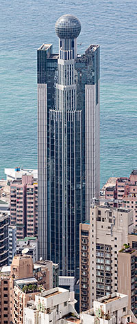 3352nd tallest in the world (shared with 78 other buildings) 3190th tallest on the Northern Hemisphere (shared with 78 other buildings) 2691st tallest in Asia (shared with 67 other buildings) 1709th tallest in China (shared with 37 other buildings) 148th tallest in Hong Kong (shared with 3 other buildings)19th tallest built in 1999 16th tallest built in Asia in 1999 11th tallest built in China in 1999 5th tallest built in Hong Kong in 19996069th most northern skyscraper 1547th most southern skyscraper 4791st most western skyscraper 2825th most eastern skyscraper7th tallest within 1 kilometre 100th tallest within 10 kilometres (3 equally tall buildings in that area) 477th tallest within 100 kilometres (12 equally tall buildings in that area) 986th tallest within 1000 kilometres (18 equally tall buildings in that area) 1817th tallest within 2000 kilometres (39 equally tall buildings in that area) 2378th tallest within 5000 kilometres (55 equally tall buildings in that area)12th most floors within 1 kilometre 285th most floors within 10 kilometres (6 buildings with same floor number) 957th most floors within 100 kilometres (27 buildings with same floor number) 1839th most floors within 1000 kilometres (72 buildings with same floor number) 2906th most floors within 2000 kilometres (132 buildings with same floor number) 3921st most floors within 5000 kilometres (164 buildings with same floor number)710 metres from the closest taller building