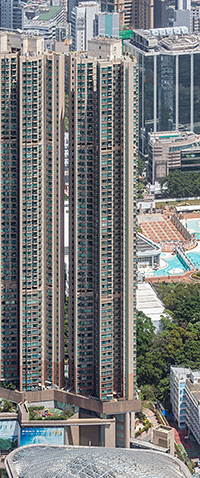 1610th tallest in the world (shared with 39 other buildings) 1529th tallest on the Northern Hemisphere (shared with 36 other buildings) 1261st tallest in Asia (shared with 28 other buildings) 773rd tallest in China (shared with 17 other buildings) 46th tallest in Hong Kong (shared with 6 other buildings)18th tallest built in 2003 (shared with 2 other buildings) 16th tallest built in Asia in 2003 (shared with 2 other buildings) 11th tallest built in China in 2003 (shared with 2 other buildings) 8th tallest built in Hong Kong in 2003 (shared with 2 other buildings)5910th most northern skyscraper 1609th most southern skyscraper 4924th most western skyscraper 2595th most eastern skyscraper10th tallest within 1 kilometre (2 equally tall buildings in that area) 37th tallest within 10 kilometres (5 equally tall buildings in that area) 200th tallest within 100 kilometres (7 equally tall buildings in that area) 431st tallest within 1000 kilometres (15 equally tall buildings in that area) 825th tallest within 2000 kilometres (17 equally tall buildings in that area) 1073rd tallest within 5000 kilometres (26 equally tall buildings in that area)10th most floors within 1 kilometre (3 buildings with same floor number) 28th most floors within 10 kilometres (7 buildings with same floor number) 79th most floors within 100 kilometres (33 buildings with same floor number) 145th most floors within 1000 kilometres (40 buildings with same floor number) 239th most floors within 2000 kilometres (48 buildings with same floor number) 342nd most floors within 5000 kilometres (52 buildings with same floor number)537 metres from the closest taller building