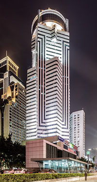 3508th tallest in the world (shared with 75 other buildings) 3345th tallest on the Northern Hemisphere (shared with 72 other buildings) 2799th tallest in Asia (shared with 49 other buildings) 1767th tallest in China (shared with 28 other buildings) 286th tallest in Shenzhen (shared with 3 other buildings)23rd tallest built in 1998 23rd tallest built in Asia in 1998 15th tallest built in China in 1998 3rd tallest built in Shenzhen in 19985357th most northern skyscraper 2134th most southern skyscraper 4567th most western skyscraper 2924th most eastern skyscraper5th tallest within 1 kilometre 126th tallest within 10 kilometres (1 equally tall building in that area) 562nd tallest within 100 kilometres (9 equally tall buildings in that area) 1026th tallest within 1000 kilometres (14 equally tall buildings in that area) 1883rd tallest within 2000 kilometres (31 equally tall buildings in that area) 2471st tallest within 5000 kilometres (47 equally tall buildings in that area)5th most floors within 1 kilometre (2 buildings with same floor number) 157th most floors within 10 kilometres (11 buildings with same floor number) 828th most floors within 100 kilometres (63 buildings with same floor number) 1432nd most floors within 1000 kilometres (130 buildings with same floor number) 2223rd most floors within 2000 kilometres (214 buildings with same floor number) 3008th most floors within 5000 kilometres (290 buildings with same floor number)170 metres from the closest taller building