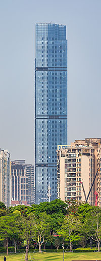 1343rd tallest in the world (shared with 77 other buildings) 1280th tallest on the Northern Hemisphere (shared with 75 other buildings) 1044th tallest in Asia (shared with 68 other buildings) 617th tallest in China (shared with 54 other buildings) 99th tallest in Shenzhen (shared with 8 other buildings)90th tallest built in 2018 (shared with 9 other buildings) 75th tallest built in Asia in 2018 (shared with 8 other buildings) 52nd tallest built in China in 2018 (shared with 8 other buildings) 12th tallest built in Shenzhen in 2018 (shared with 1 other building)5450th most northern skyscraper 1960th most southern skyscraper 4163rd most western skyscraper 3247th most eastern skyscraper Tallest within 1 kilometre (1 equally tall building in that area) 44th tallest within 10 kilometres (4 equally tall buildings in that area) 204th tallest within 100 kilometres (20 equally tall buildings in that area) 344th tallest within 1000 kilometres (32 equally tall buildings in that area) 664th tallest within 2000 kilometres (57 equally tall buildings in that area) 875th tallest within 5000 kilometres (63 equally tall buildings in that area)2nd most floors within 1 kilometre (1 building with same floor number) 110th most floors within 10 kilometres (5 buildings with same floor number) 758th most floors within 100 kilometres (60 buildings with same floor number) 1181st most floors within 1000 kilometres (95 buildings with same floor number) 1839th most floors within 2000 kilometres (170 buildings with same floor number) 2510th most floors within 5000 kilometres (226 buildings with same floor number)1.09 kilometres from the closest taller building
