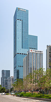 168th tallest in the world (shared with 3 other buildings) 166th tallest on the Northern Hemisphere (shared with 3 other buildings) 144th tallest in Asia (shared with 3 other buildings) 98th tallest in China (shared with 2 other buildings) 16th tallest in Shenzhen17th tallest built in 2020 12th tallest built in Asia in 2020 10th tallest built in China in 2020 2nd tallest built in Shenzhen in 20205383rd most northern skyscraper 2026th most southern skyscraper 4239th most western skyscraper 3170th most eastern skyscraper Tallest within 1 kilometre 5th tallest within 10 kilometres 31st tallest within 100 kilometres (2 equally tall buildings in that area) 59th tallest within 1000 kilometres (2 equally tall buildings in that area) 100th tallest within 2000 kilometres (2 equally tall buildings in that area) 116th tallest within 5000 kilometres (2 equally tall buildings in that area) Most floors within 1 kilometre 4th most floors within 10 kilometres (2 buildings with same floor number) 30th most floors within 100 kilometres (7 buildings with same floor number) 48th most floors within 1000 kilometres (11 buildings with same floor number) 78th most floors within 2000 kilometres (16 buildings with same floor number) 119th most floors within 5000 kilometres (25 buildings with same floor number)1.53 kilometres from the closest taller building