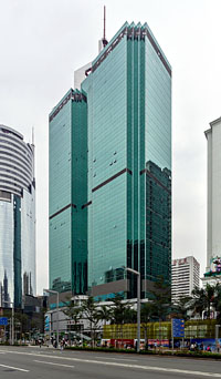 4683rd tallest in the world (shared with 197 other buildings) 4475th tallest on the Northern Hemisphere (shared with 185 other buildings) 3703rd tallest in Asia (shared with 167 other buildings) 2348th tallest in China (shared with 101 other buildings) 360th tallest in Shenzhen (shared with 12 other buildings)23rd tallest built in 1997 (shared with 1 other building) 21st tallest built in Asia in 1997 (shared with 1 other building) 13th tallest built in China in 1997 (shared with 1 other building) 2nd tallest built in Shenzhen in 1997 (shared with 1 other building)5385th most northern skyscraper 2129th most southern skyscraper 4676th most western skyscraper 2838th most eastern skyscraper7th tallest within 1 kilometre 151st tallest within 10 kilometres (4 equally tall buildings in that area) 747th tallest within 100 kilometres (26 equally tall buildings in that area) 1424th tallest within 1000 kilometres (57 equally tall buildings in that area) 2506th tallest within 2000 kilometres (97 equally tall buildings in that area) 3313th tallest within 5000 kilometres (150 equally tall buildings in that area)17th most floors within 1 kilometre 222nd most floors within 10 kilometres (1 building with same floor number) 1231st most floors within 100 kilometres (17 buildings with same floor number) 2252nd most floors within 1000 kilometres (30 buildings with same floor number) 3778th most floors within 2000 kilometres (45 buildings with same floor number) 5082nd most floors within 5000 kilometres (66 buildings with same floor number)433 metres from the closest taller building