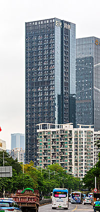 6984th tallest in the world (shared with 178 other buildings) 6656th tallest on the Northern Hemisphere (shared with 171 other buildings) 5485th tallest in Asia (shared with 123 other buildings) 3495th tallest in China (shared with 72 other buildings) 544th tallest in Shenzhen (shared with 18 other buildings)339th tallest built in 2015 (shared with 6 other buildings) 301st tallest built in Asia in 2015 (shared with 6 other buildings) 212th tallest built in China in 2015 (shared with 4 other buildings) 20th tallest built in Shenzhen in 2015 (shared with 3 other buildings)5633rd most northern skyscraper 1983rd most southern skyscraper 4205th most western skyscraper 3411th most eastern skyscraper2nd tallest within 1 kilometre 229th tallest within 10 kilometres (11 equally tall buildings in that area) 1393rd tallest within 100 kilometres (40 equally tall buildings in that area) 2227th tallest within 1000 kilometres (51 equally tall buildings in that area) 3733rd tallest within 2000 kilometres (76 equally tall buildings in that area) 4958th tallest within 5000 kilometres (108 equally tall buildings in that area)3rd most floors within 1 kilometre 244th most floors within 10 kilometres (6 buildings with same floor number) 1457th most floors within 100 kilometres (22 buildings with same floor number) 2315th most floors within 1000 kilometres (32 buildings with same floor number) 3862nd most floors within 2000 kilometres (48 buildings with same floor number) 5169th most floors within 5000 kilometres (69 buildings with same floor number)86 metres from the closest taller building