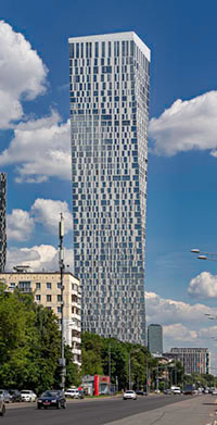 1595th tallest in the world (shared with 39 other buildings) 1514th tallest on the Northern Hemisphere (shared with 36 other buildings) 49th tallest in Europe 22nd tallest in Russia 21st tallest in Moscow47th tallest built in 2012 Tallest built in Europe in 2012 Tallest built in Russia in 2012 Tallest built in Moscow in 201268th most northern skyscraper 7262nd most southern skyscraper 1546th most western skyscraper 5784th most eastern skyscraper Tallest within 1 kilometre 21st tallest within 10 kilometres 21st tallest within 100 kilometres 22nd tallest within 1000 kilometres 36th tallest within 2000 kilometres 243rd tallest within 5000 kilometres (2 equally tall buildings in that area) Most floors within 1 kilometre 24th most floors within 10 kilometres (4 buildings with same floor number) 30th most floors within 100 kilometres (7 buildings with same floor number) 31st most floors within 1000 kilometres (7 buildings with same floor number) 46th most floors within 2000 kilometres (8 buildings with same floor number) 225th most floors within 5000 kilometres (24 buildings with same floor number)2.71 kilometres from the closest taller building