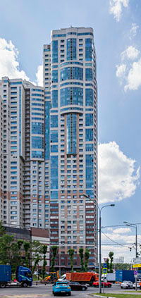 5686th tallest in the world (shared with 141 other buildings) 5433rd tallest on the Northern Hemisphere (shared with 136 other buildings) 191st tallest in Europe (shared with 4 other buildings) 69th tallest in Russia (shared with 2 other buildings) 66th tallest in Moscow (shared with 1 other building)144th tallest built in 2009 (shared with 5 other buildings) 3rd tallest built in Europe in 2009 2nd tallest built in Russia in 2009 2nd tallest built in Moscow in 200984th most northern skyscraper 7325th most southern skyscraper 1538th most western skyscraper 5871st most eastern skyscraper2nd tallest within 1 kilometre 29th tallest within 10 kilometres 66th tallest within 100 kilometres (1 equally tall building in that area) 67th tallest within 1000 kilometres (2 equally tall buildings in that area) 142nd tallest within 2000 kilometres (3 equally tall buildings in that area) 675th tallest within 5000 kilometres (9 equally tall buildings in that area)2nd most floors within 1 kilometre 23rd most floors within 10 kilometres (2 buildings with same floor number) 56th most floors within 100 kilometres (7 buildings with same floor number) 58th most floors within 1000 kilometres (7 buildings with same floor number) 101st most floors within 2000 kilometres (13 buildings with same floor number) 446th most floors within 5000 kilometres (42 buildings with same floor number)971 metres from the closest taller building