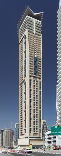 1869th tallest in the world (shared with 50 other buildings) 1772nd tallest on the Northern Hemisphere (shared with 49 other buildings) 1477th tallest in Asia (shared with 44 other buildings) 140th tallest in the United Arab Emirates (shared with 1 other building) 115th tallest in Dubai (shared with 1 other building)18th tallest built in 2006 16th tallest built in Asia in 2006 5th tallest built in the United Arab Emirates in 2006 5th tallest built in Dubai in 20064303rd most northern skyscraper 3216th most southern skyscraper 1866th most western skyscraper 5653rd most eastern skyscraper22nd tallest within 1 kilometre 38th tallest within 10 kilometres (1 equally tall building in that area) 125th tallest within 100 kilometres (1 equally tall building in that area) 184th tallest within 1000 kilometres (3 equally tall buildings in that area) 240th tallest within 2000 kilometres (3 equally tall buildings in that area) 382nd tallest within 5000 kilometres (8 equally tall buildings in that area)17th most floors within 1 kilometre 25th most floors within 10 kilometres (1 building with same floor number) 91st most floors within 100 kilometres (7 buildings with same floor number) 119th most floors within 1000 kilometres (7 buildings with same floor number) 170th most floors within 2000 kilometres (12 buildings with same floor number) 272nd most floors within 5000 kilometres (27 buildings with same floor number)115 metres from the closest taller building