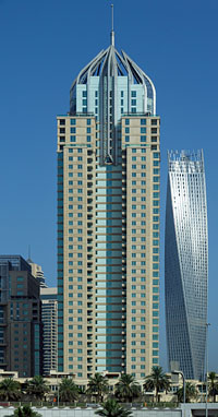 5171st tallest in the world (shared with 120 other buildings) 4944th tallest on the Northern Hemisphere (shared with 116 other buildings) 4097th tallest in Asia (shared with 83 other buildings) 253rd tallest in the United Arab Emirates (shared with 5 other buildings) 198th tallest in Dubai (shared with 4 other buildings)101st tallest built in 2003 (shared with 3 other buildings) 90th tallest built in Asia in 2003 (shared with 2 other buildings) 4th tallest built in the United Arab Emirates in 2003 (shared with 1 other building) 4th tallest built in Dubai in 2003 (shared with 1 other building)4312th most northern skyscraper 3207th most southern skyscraper 1872nd most western skyscraper 5647th most eastern skyscraper34th tallest within 1 kilometre (2 equally tall buildings in that area) 75th tallest within 10 kilometres (4 equally tall buildings in that area) 225th tallest within 100 kilometres (4 equally tall buildings in that area) 336th tallest within 1000 kilometres (6 equally tall buildings in that area) 450th tallest within 2000 kilometres (7 equally tall buildings in that area) 906th tallest within 5000 kilometres (15 equally tall buildings in that area)37th most floors within 1 kilometre (5 buildings with same floor number) 86th most floors within 10 kilometres (8 buildings with same floor number) 240th most floors within 100 kilometres (11 buildings with same floor number) 339th most floors within 1000 kilometres (18 buildings with same floor number) 456th most floors within 2000 kilometres (25 buildings with same floor number) 971st most floors within 5000 kilometres (69 buildings with same floor number)288 metres from the closest taller building