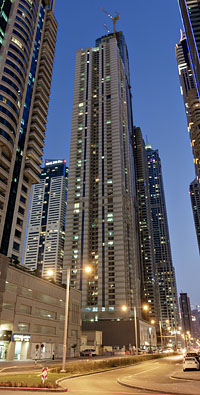 278th tallest in the world (shared with 9 other buildings) 273rd tallest on the Northern Hemisphere (shared with 9 other buildings) 232nd tallest in Asia (shared with 9 other buildings) 39th tallest in the United Arab Emirates (shared with 1 other building) 34th tallest in Dubai (shared with 1 other building)11th tallest built in 2010 10th tallest built in Asia in 2010 6th tallest built in the United Arab Emirates in 2010 5th tallest built in Dubai in 20104291st most northern skyscraper 3228th most southern skyscraper 1869th most western skyscraper 5650th most eastern skyscraper11th tallest within 1 kilometre 14th tallest within 10 kilometres 35th tallest within 100 kilometres (1 equally tall building in that area) 49th tallest within 1000 kilometres (1 equally tall building in that area) 51st tallest within 2000 kilometres (1 equally tall building in that area) 69th tallest within 5000 kilometres (2 equally tall buildings in that area)9th most floors within 1 kilometre 11th most floors within 10 kilometres 20th most floors within 100 kilometres 23rd most floors within 1000 kilometres 30th most floors within 2000 kilometres (1 building with same floor number) 37th most floors within 5000 kilometres (2 buildings with same floor number)57 metres from the closest taller building