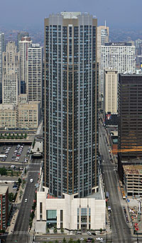 2602nd tallest in the world (shared with 52 other buildings) 2477th tallest on the Northern Hemisphere (shared with 51 other buildings) 337th tallest in North America (shared with 10 other buildings) 276th tallest in the United States (shared with 8 other buildings) 42nd tallest in Chicago (shared with 1 other building)21st tallest built in 2001 4th tallest built in North America in 2001 4th tallest built in the United States in 2001 2nd tallest built in Chicago in 2001528th most northern skyscraper 6991st most southern skyscraper 414th most western skyscraper 7105th most eastern skyscraper15th tallest within 1 kilometre (1 equally tall building in that area) 42nd tallest within 10 kilometres (1 equally tall building in that area) 42nd tallest within 100 kilometres (1 equally tall building in that area) 100th tallest within 1000 kilometres (2 equally tall buildings in that area) 287th tallest within 2000 kilometres (7 equally tall buildings in that area) 368th tallest within 5000 kilometres (12 equally tall buildings in that area)16th most floors within 1 kilometre (2 buildings with same floor number) 31st most floors within 10 kilometres (3 buildings with same floor number) 31st most floors within 100 kilometres (3 buildings with same floor number) 58th most floors within 1000 kilometres (9 buildings with same floor number) 138th most floors within 2000 kilometres (25 buildings with same floor number) 173rd most floors within 5000 kilometres (29 buildings with same floor number)208 metres from the closest taller building