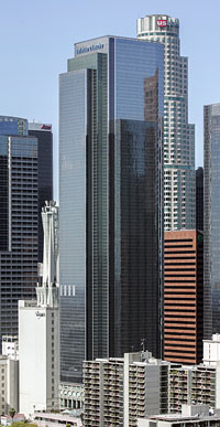 1133rd tallest in the world (shared with 37 other buildings) 1083rd tallest on the Northern Hemisphere (shared with 36 other buildings) 151st tallest in North America (shared with 8 other buildings) 130th tallest in the United States (shared with 7 other buildings) 4th tallest in Los Angeles (shared with 1 other building)9th tallest built in 1992 7th tallest built in North America in 1992 7th tallest built in the United States in 1992 Tallest built in Los Angeles in 19922321st most northern skyscraper 5198th most southern skyscraper 100th most western skyscraper 7419th most eastern skyscraper4th tallest within 1 kilometre (1 equally tall building in that area) 4th tallest within 10 kilometres (1 equally tall building in that area) 4th tallest within 100 kilometres (1 equally tall building in that area) 8th tallest within 1000 kilometres (1 equally tall building in that area) 20th tallest within 2000 kilometres (1 equally tall building in that area) 163rd tallest within 5000 kilometres (9 equally tall buildings in that area)9th most floors within 1 kilometre (4 buildings with same floor number) 12th most floors within 10 kilometres (4 buildings with same floor number) 12th most floors within 100 kilometres (4 buildings with same floor number) 23rd most floors within 1000 kilometres (7 buildings with same floor number) 54th most floors within 2000 kilometres (15 buildings with same floor number) 382nd most floors within 5000 kilometres (54 buildings with same floor number)265 metres from the closest taller building