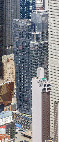3460th tallest in the world (shared with 54 other buildings) 3297th tallest on the Northern Hemisphere (shared with 54 other buildings) 454th tallest in North America (shared with 15 other buildings) 373rd tallest in the United States (shared with 14 other buildings) 148th tallest in New York City (shared with 3 other buildings)129th tallest built in 2011 8th tallest built in North America in 2011 5th tallest built in the United States in 2011 3rd tallest built in New York City in 2011925th most northern skyscraper 6594th most southern skyscraper 892nd most western skyscraper 6627th most eastern skyscraper38th tallest within 1 kilometre 154th tallest within 10 kilometres (3 equally tall buildings in that area) 154th tallest within 100 kilometres (3 equally tall buildings in that area) 239th tallest within 1000 kilometres (5 equally tall buildings in that area) 344th tallest within 2000 kilometres (10 equally tall buildings in that area) 494th tallest within 5000 kilometres (16 equally tall buildings in that area)65th most floors within 1 kilometre (3 buildings with same floor number) 270th most floors within 10 kilometres (9 buildings with same floor number) 270th most floors within 100 kilometres (9 buildings with same floor number) 424th most floors within 1000 kilometres (20 buildings with same floor number) 638th most floors within 2000 kilometres (33 buildings with same floor number) 921st most floors within 5000 kilometres (55 buildings with same floor number)73 metres from the closest taller building