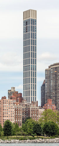 552nd tallest in the world (shared with 23 other buildings) 532nd tallest on the Northern Hemisphere (shared with 22 other buildings) 74th tallest in North America (shared with 2 other buildings) 67th tallest in the United States (shared with 2 other buildings) 34th tallest in New York City (shared with 1 other building)47th tallest built in 2021 (shared with 1 other building) 4th tallest built in North America in 2021 3rd tallest built in the United States in 2021 3rd tallest built in New York City in 2021902nd most northern skyscraper 6617th most southern skyscraper 1090th most western skyscraper 6429th most eastern skyscraper5th tallest within 1 kilometre 35th tallest within 10 kilometres (1 equally tall building in that area) 35th tallest within 100 kilometres (1 equally tall building in that area) 44th tallest within 1000 kilometres (1 equally tall building in that area) 60th tallest within 2000 kilometres (1 equally tall building in that area) 78th tallest within 5000 kilometres (2 equally tall buildings in that area)3rd most floors within 1 kilometre (1 building with same floor number) 34th most floors within 10 kilometres (3 buildings with same floor number) 34th most floors within 100 kilometres (3 buildings with same floor number) 45th most floors within 1000 kilometres (6 buildings with same floor number) 65th most floors within 2000 kilometres (7 buildings with same floor number) 86th most floors within 5000 kilometres (7 buildings with same floor number)758 metres from the closest taller building