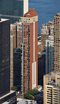 6562nd tallest in the world (shared with 176 other buildings) 6265th tallest on the Northern Hemisphere (shared with 157 other buildings) 898th tallest in North America (shared with 27 other buildings) 729th tallest in the United States (shared with 18 other buildings) 264th tallest in New York City (shared with 4 other buildings)22nd tallest built in 1988 (shared with 1 other building) 13th tallest built in North America in 1988 11th tallest built in the United States in 1988 4th tallest built in New York City in 19881002nd most northern skyscraper 6517th most southern skyscraper 1044th most western skyscraper 6475th most eastern skyscraper46th tallest within 1 kilometre 278th tallest within 10 kilometres (4 equally tall buildings in that area) 278th tallest within 100 kilometres (4 equally tall buildings in that area) 433rd tallest within 1000 kilometres (11 equally tall buildings in that area) 661st tallest within 2000 kilometres (18 equally tall buildings in that area) 983rd tallest within 5000 kilometres (27 equally tall buildings in that area)18th most floors within 1 kilometre (2 buildings with same floor number) 164th most floors within 10 kilometres (8 buildings with same floor number) 164th most floors within 100 kilometres (8 buildings with same floor number) 252nd most floors within 1000 kilometres (20 buildings with same floor number) 389th most floors within 2000 kilometres (31 buildings with same floor number) 543rd most floors within 5000 kilometres (39 buildings with same floor number)102 metres from the closest taller building
